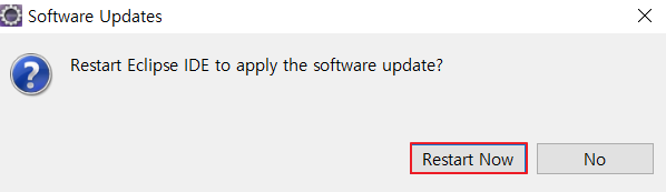 4. 설치가 정상적으로 되었으면 이클립스 재시작하라는 문구가 나옵니다.