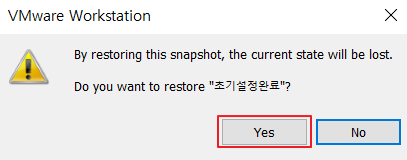 2. [Yes] 버튼을 누르면 선택한 스냅샷으로 돌아갑니다.