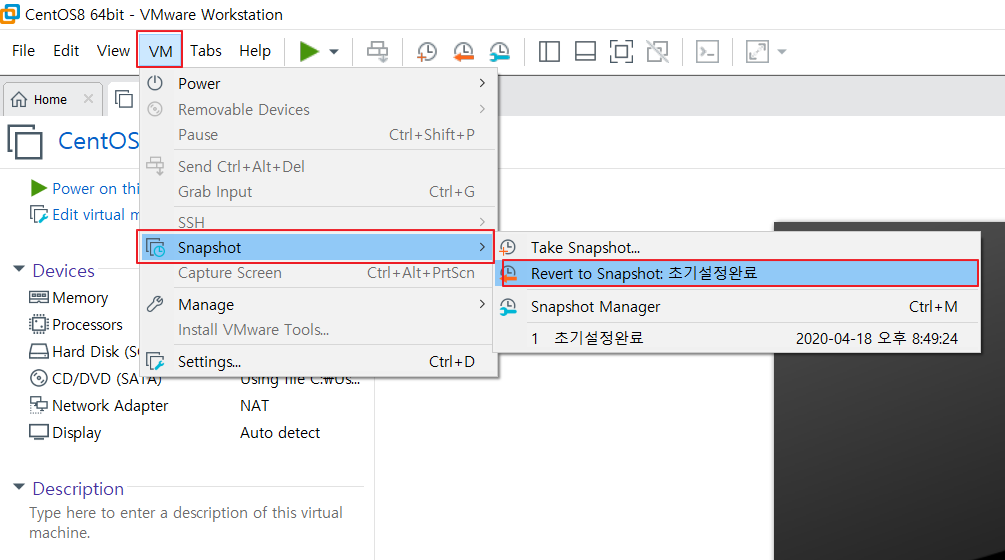 [VM] - [Snapshot] - [Revert to Snapshot: 스냅샷이름]