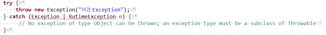 Java 1.7부터 여러개의 예외를 하나의 catch 블록에서 사용 할 수 있음